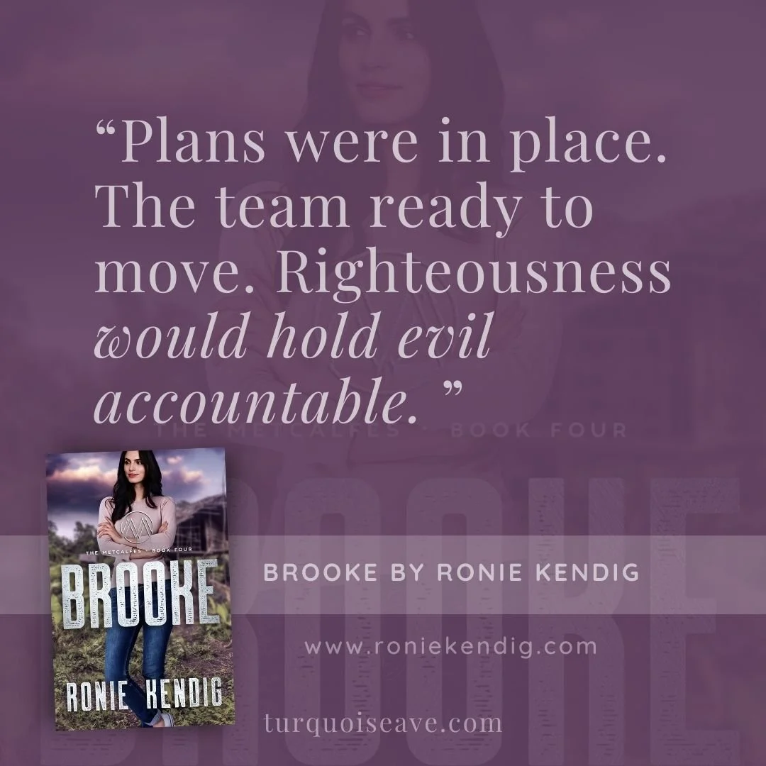 Author Ronie Kendig has broken my heart time and again, in all the best ways, with this series. Brooke’s story was a riveting, heart-rending conclusion to the Metcalfes collection. While delivering horrendous and heartbreaking circumstances for her characters, Kendig offered the promise of hope, of rescue and of redemption. Brooke was a novel that brought tears to my eyes, destroyed me and challenged me while simultaneously encouraging me, uplifting me and entertaining me.
