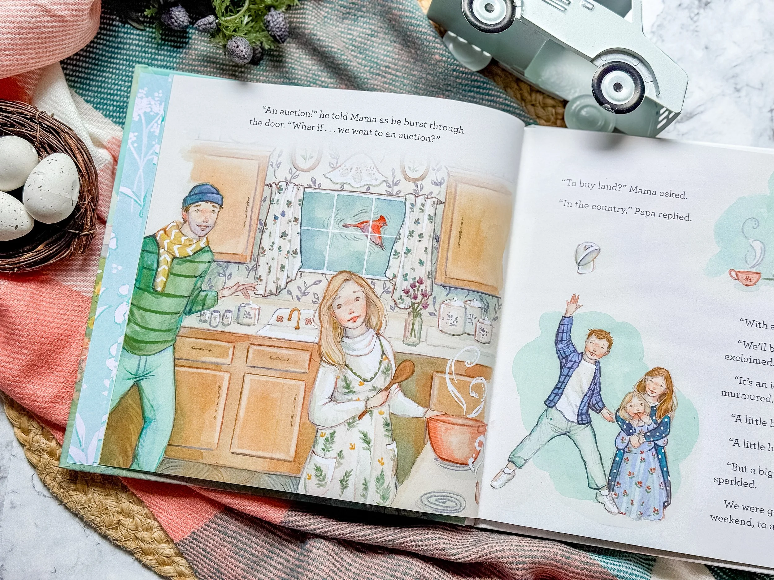 One day Papa burst into the kitchen with a wild idea. What if the family moved to the country? What if they built their very own farmhouse between sleeping strawberry fields and the misty Appalachian Mountains? Join a little boy and his adventurous parents and sisters as they chase a dream of open sky, nature to explore, a blooming garden, and lots of animal friends.